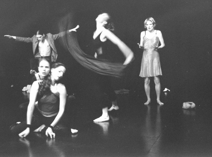 2005 Morgens vor dem Leben" Lyrik - Tanz - Musik Regie: Laura Bravo; Pailou-Theater (Köln) 2004 "Abwasch" Duo Regie-Co-Produktion mit Laura Bravo; VIRUS-Tanztheater Open-Air-Festival (Köln) 2003 "sleep-over" Soloperformance für das PLAN Ruheraumprojekt am Kölner Flughafen: www.ruheraum.net 2003 "Besessenheit" Duo Regie-Co-Produktion mit Laura Bravo; Bürgerzentrum Kalk (Köln) 2003 Ahnungen" Duo Regie: Laura Bravo; Bürgerzentrum Kalk (Köln) 2002 Atem" Duo Regie-Co-Produktion mit Laura Bravo; WIP (Köln) 1998 - 2003 Ensemble "ConFuß", www.improvisationstanz.de 2002 Na, geht´s gut? - Über das Endlich und nie wieder des Alleinseins!" Regie: Jörg Hassmann; Waggonhalle Marburg 2000 Daheim" Regie: Marcus von Schmude; Waggonhalle Marburg 1999 Aus dem Nichts" Regie: Marcus von Schmude; Waggonhalle Marburg | |||||||||||||||||||||||||||||||||||||||||||||||||||||